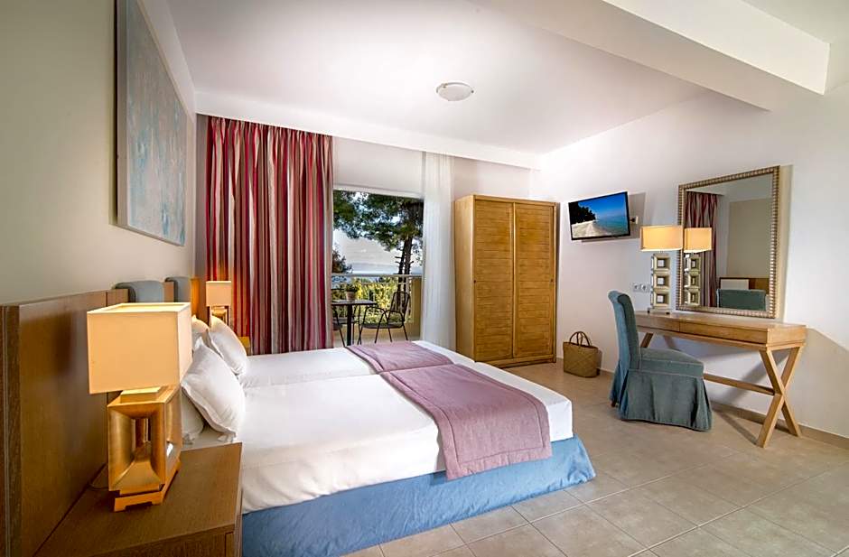 Spacious, air-conditioned room with a fridge, hairdryer and TV with satellite channels. Its balcony offers views of the Kassandra Bay, the pool or the garden.